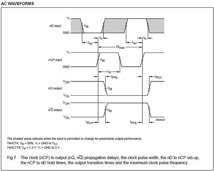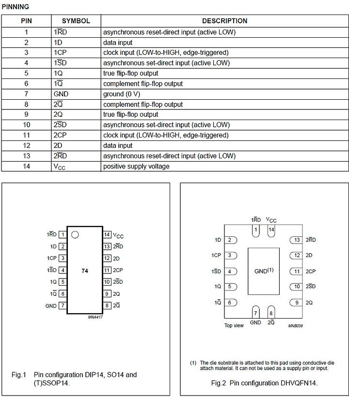 오늘 실험에 사용한 칩은 74HC74N으로 Dual D-type Flip-Flop이다. 다음은 74HC74N의 데이터시트이다.