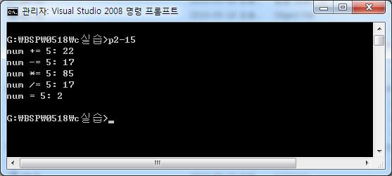 x = x + 5; 와 x += 5는 같은 의미를 가진다. 전자는 부가연산자(=)를 이용한 것이고, 후자는 복합부가연산자(+=)를 이용한 것이다.